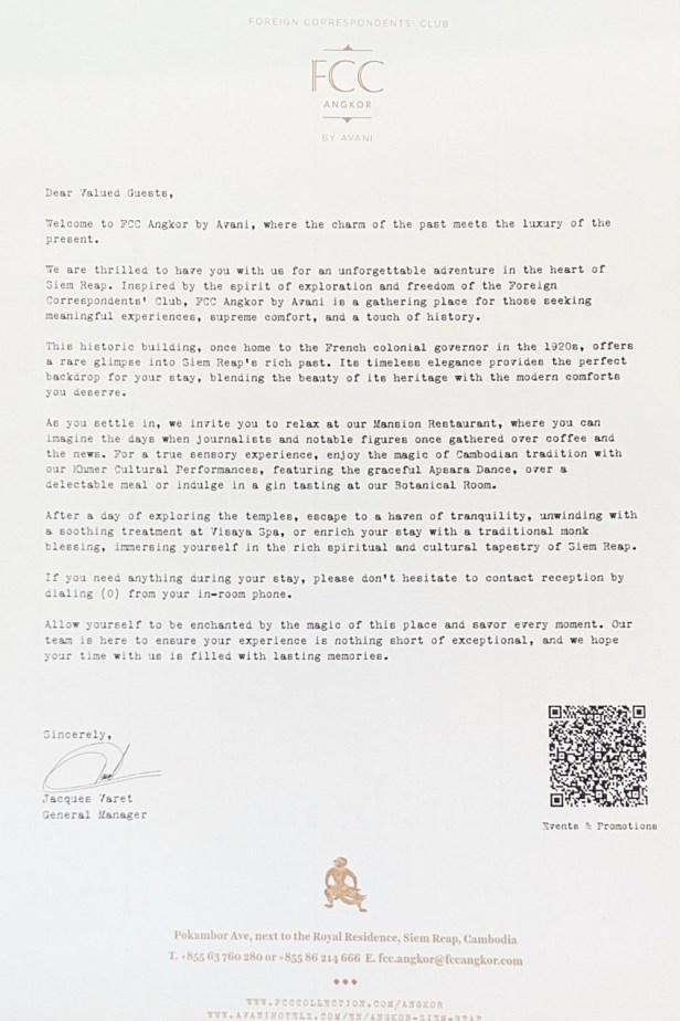 We really enjoyed our stay at the FCC Angkor and would highly recommend this hotel.