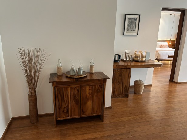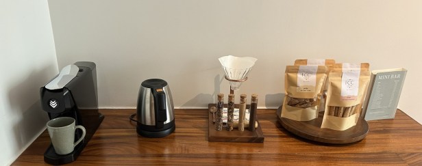 There’s plenty of coffee and tea-making facilities, a minibar, plus lots of nuts and other treats. Everything in the minibar, except beer, is included for suite guests. Plenty of bottles of water were replenished each day.