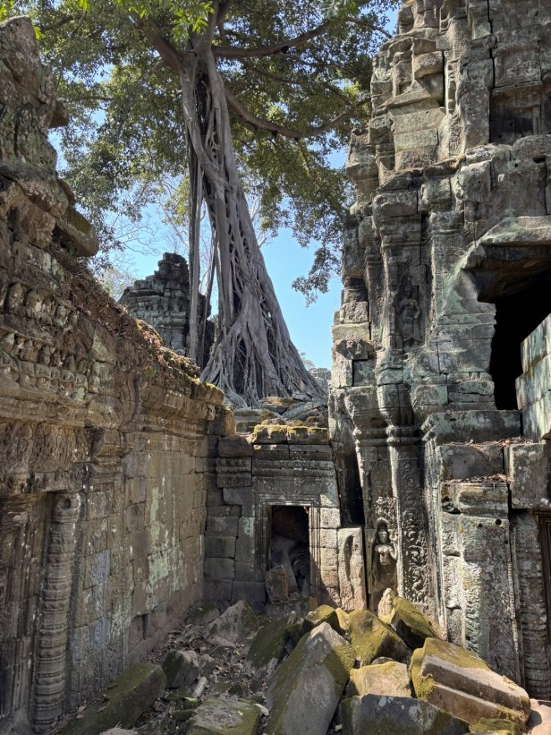 Ta Prohm was probably our favourite temple over three days. Unlike Angkor Wat, which feels curated and monumental, Ta Prohm feels accidental — as if the jungle simply forgot to let go.