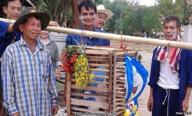 Although the cat isn’t harmed in the ritual, the farmers were worried about the impact of social media and accusations of cruelty. So they decided to use a toy cat as a substitute. Unfortunately, after an extensive search of the village, the only toy cat found was based on the Japanese anime cat Doraemon.