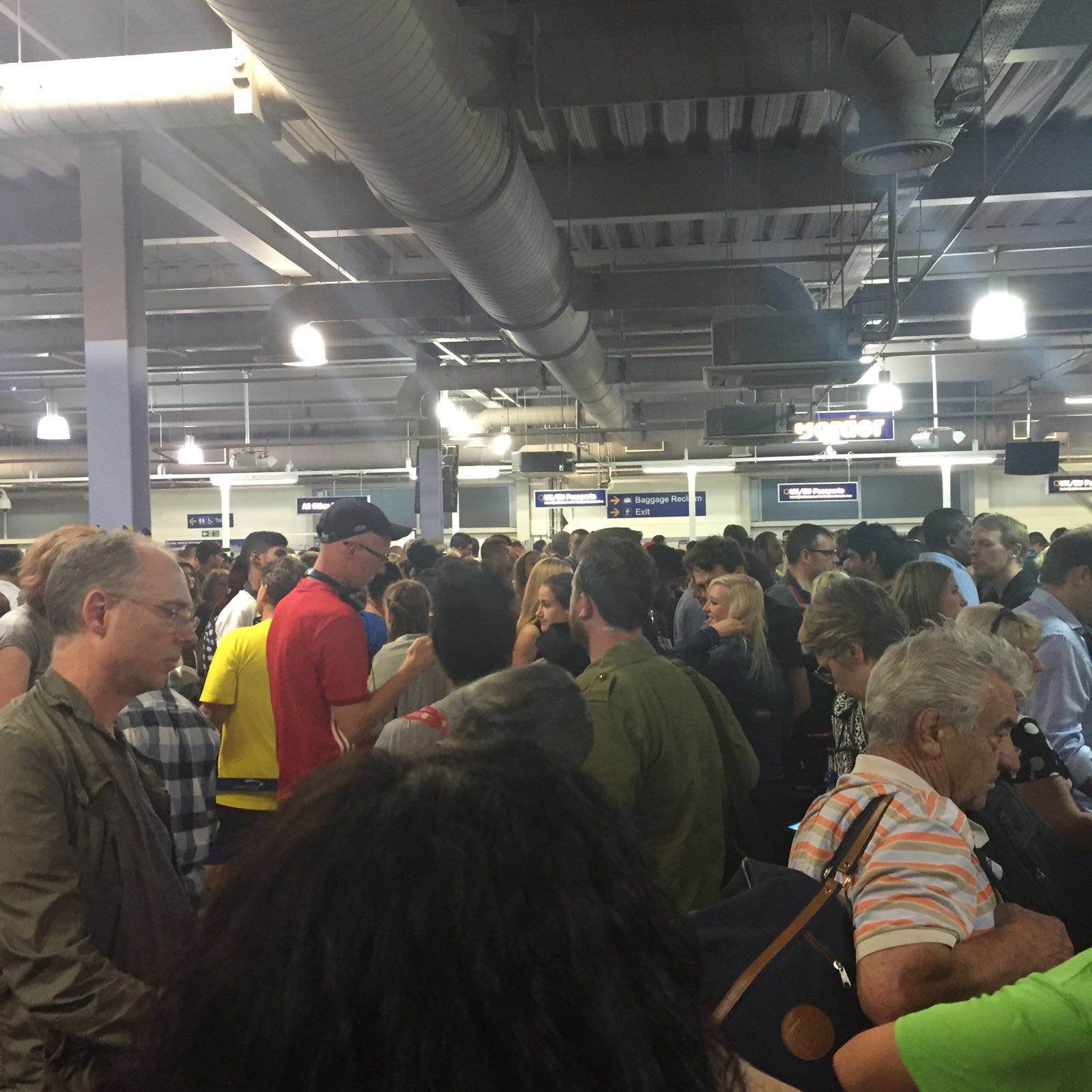 Passport control at Luton has always been a mess. They have some e-passport gates now, but even with these you could easily wait over an hour to clear immigration. The whole place is understaffed and the flight schedules mean that three flights often arrive all at once. Here are some pictures taken this week:
