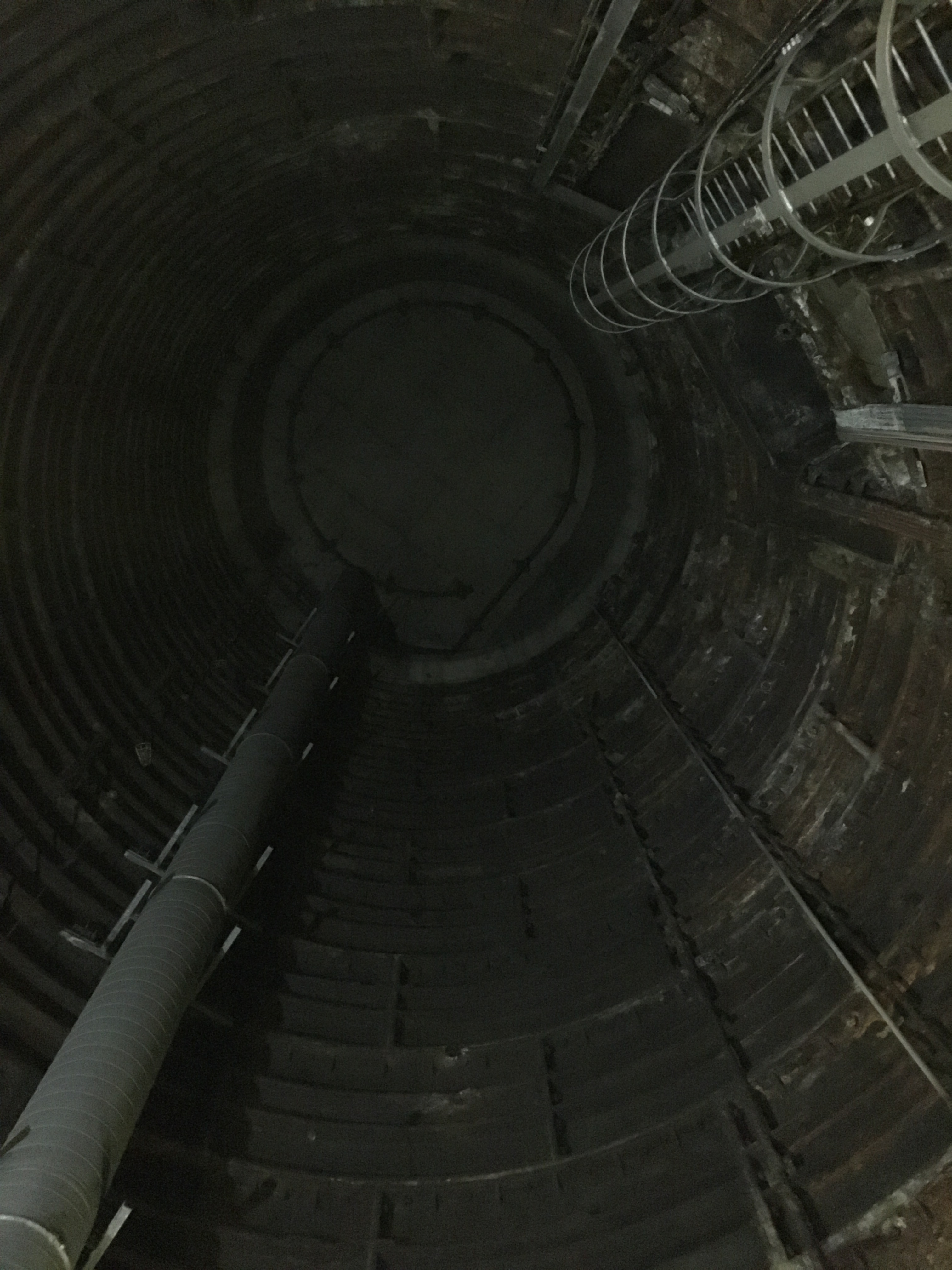Viewed an old elevator shaft, now used for ventilation (this picture taken looking straight up).