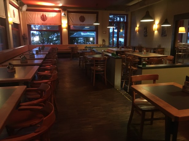 The steaks are pretty good here, but the prices have slowly crept up. A 200g Pfeffersteak – Beef Sirloin with a mild Pepper sauce is now 375Kc plus 45Kc for steak fries.