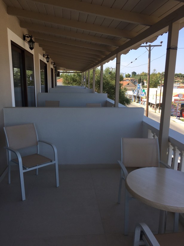 Behind the pool are some more apartments that I think are probably the best choice – although I haven’t seen the interior. The reason for that choice is that they are furthest away from the street and the Breeze Bar. There is quite a lot of street noise; Greeks like to sound their car horns and there are a lot of motorbikes and rental trikes.