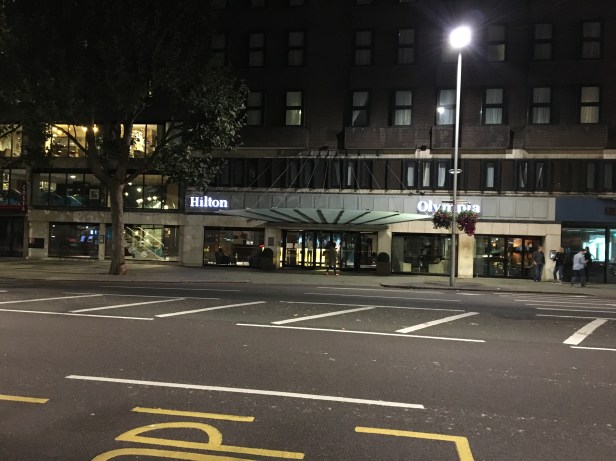 The Hilton Olympia is only a few minutes walk from Olympia Underground and Main Line station – the station is just opposite the exhibition centre. However, underground trains only run at the weekend and aren’t that frequent. We were staying at the weekend and so that wasn’t so much of an issue.