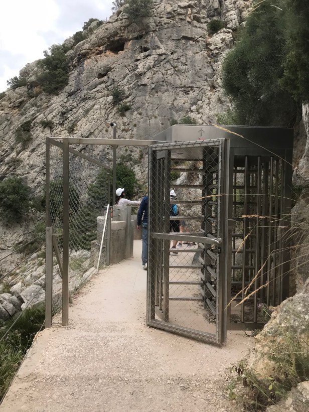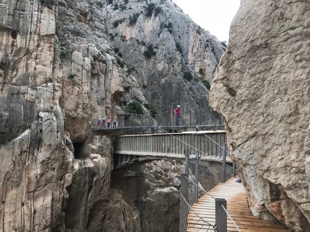 We drove from Seville (about 2.5 hours) in a rental car – the sat nav took us to an in-paved road and a blocked-by-barrier entrance. There isn’t any signposting to help you find where to go. I entered the following co-ordinates for the Visitor Centre from the website: 36.914411,-4.806910 – that took us to the visitor centre where we then turned left (signpost said El Chorro) and followed a winding road until we reached a parking area. After that we had to walk up a hill to the train station and bus pick up point.