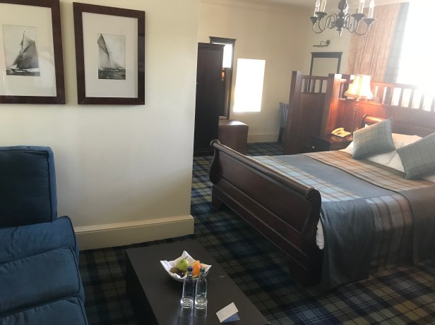 We were delighted to find that we’d been upgraded to the Lagavulin Suite – all the suites are named after famous whiskies. Strangely, the receptionist hadn’t mentioned our upgrade, but we soon realised that we had probably the best room in the hotel.