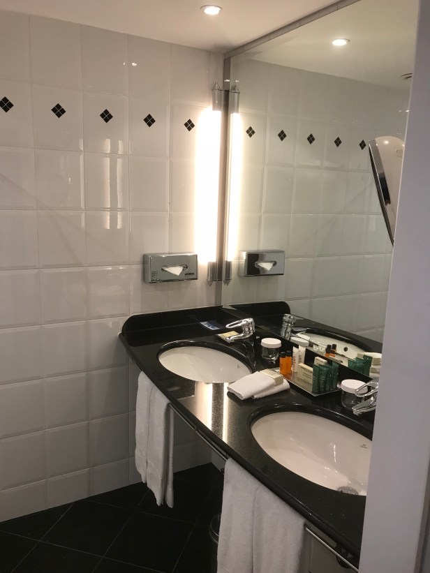 I checked in two rooms, one as a Diamond (me) and one as a Gold HHonors Member – oddly the Gold was upgraded to a corner suite on the second floor and Diamond to a king room on the executive floor. I sneakily swapped room keys and took the suite. the suite was huge with a large lounge area, separate bedroom, bathroom and toilet. The bedroom felt a little small, but only because it was just a bedroom. The bathroom was also a standard size – all the space was given to the lounge area. But I’m not complaining.