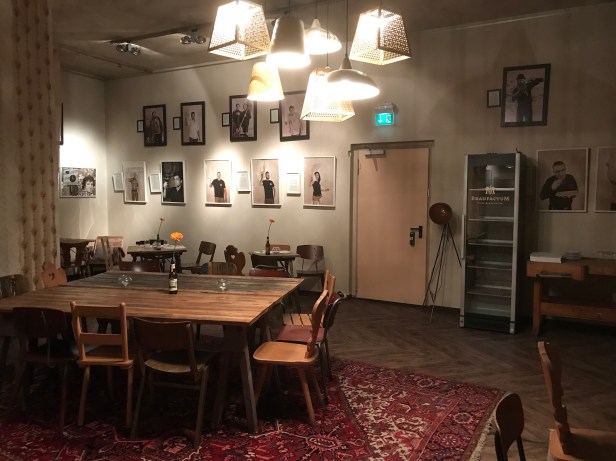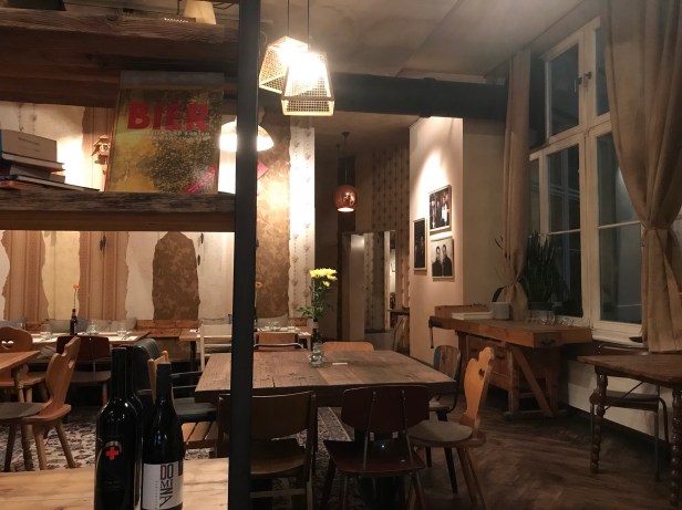 It was a Tuesday night in August and the indoor part of the restaurant was almost empty – most people were in the courtyard garden. The plague of wasps that we’d found in Berlin made us decide against the garden – but the inside was fine.