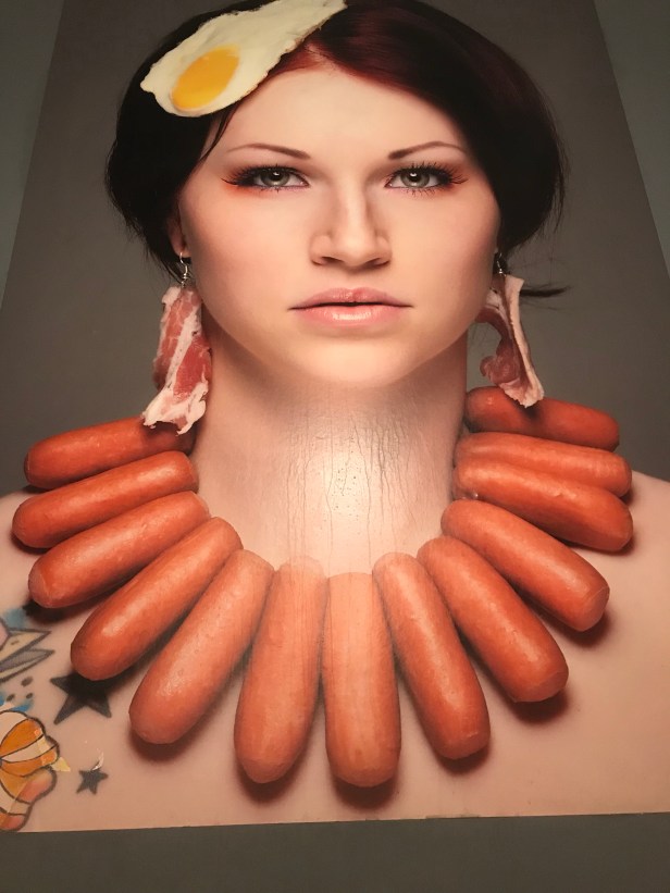 The bathroom was interesting – with a large picture of a woman wearing sausage, bacon and egg.