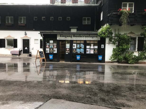 There is a huge bunker system in the Berchtesgaden hillside. Sadly, most of the tunnels are now sealed off and inaccessible. There are two intact bunker systems open to the public on the Obersalzberg. One is under the Documentation Center and included in the museum entry – although that was closed when we visited. The other bunker is under the Hotel zum Türken.
