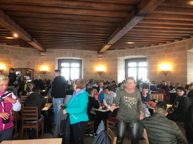 The restaurant is busy. Many tables are allocated to pre-booked groups. It took about 15 minutes before I spotted a group leaving and I immediately grabbed the table – a complete mess of half-eaten food and beer glasses. It took a while before the table was cleared. I wouldn’t say the wait staff were rude, more coldly-efficient, dealing with a sea of visitors, none of whom likely to return – it’s amazing the service and food quality isn’t terrible. As it was, we had a decent beer and snack that wasn’t expensive considering the location.