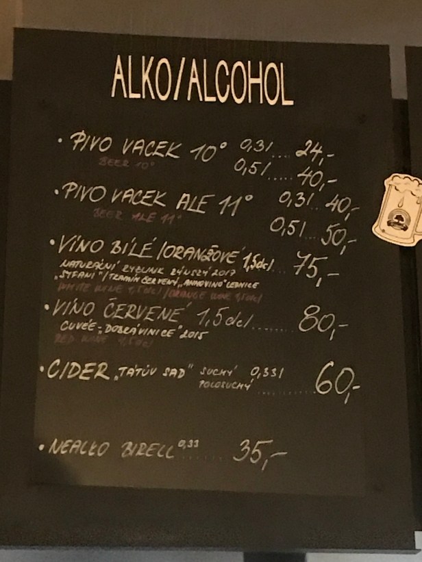 The red wine (1.5dcl 80Kc) was chilled like a cold beer – it was so disgusting that we worried we may fall ill by drinking it. We returned to the counter and swapped it for a beer and a lemonade – making the price for those 160Kc.