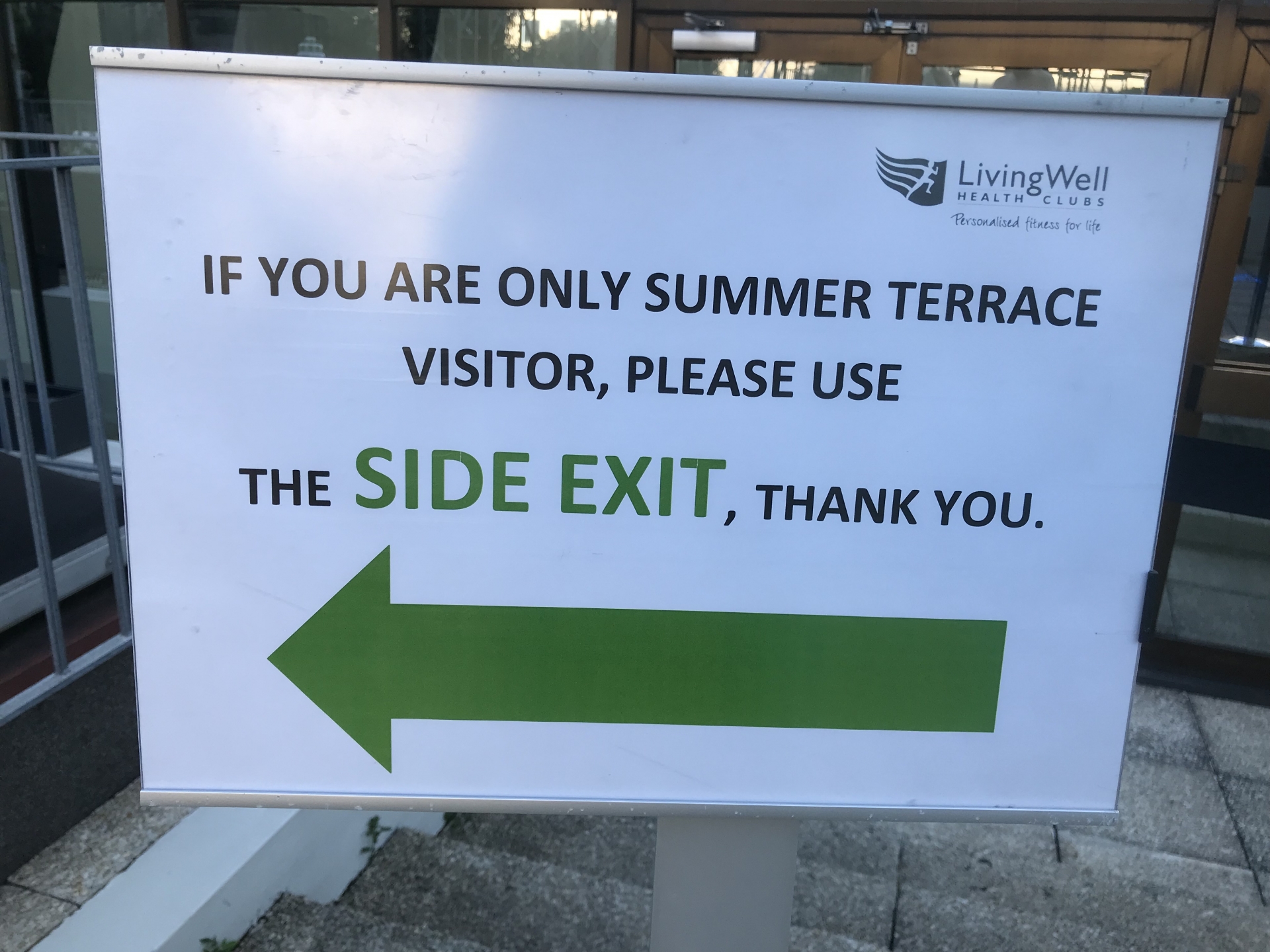 The side exit door just led straight back to the pool. I also don’t know if it’s possible to just turn up at the Living Well reception and say ‘Summer Garden only please’.