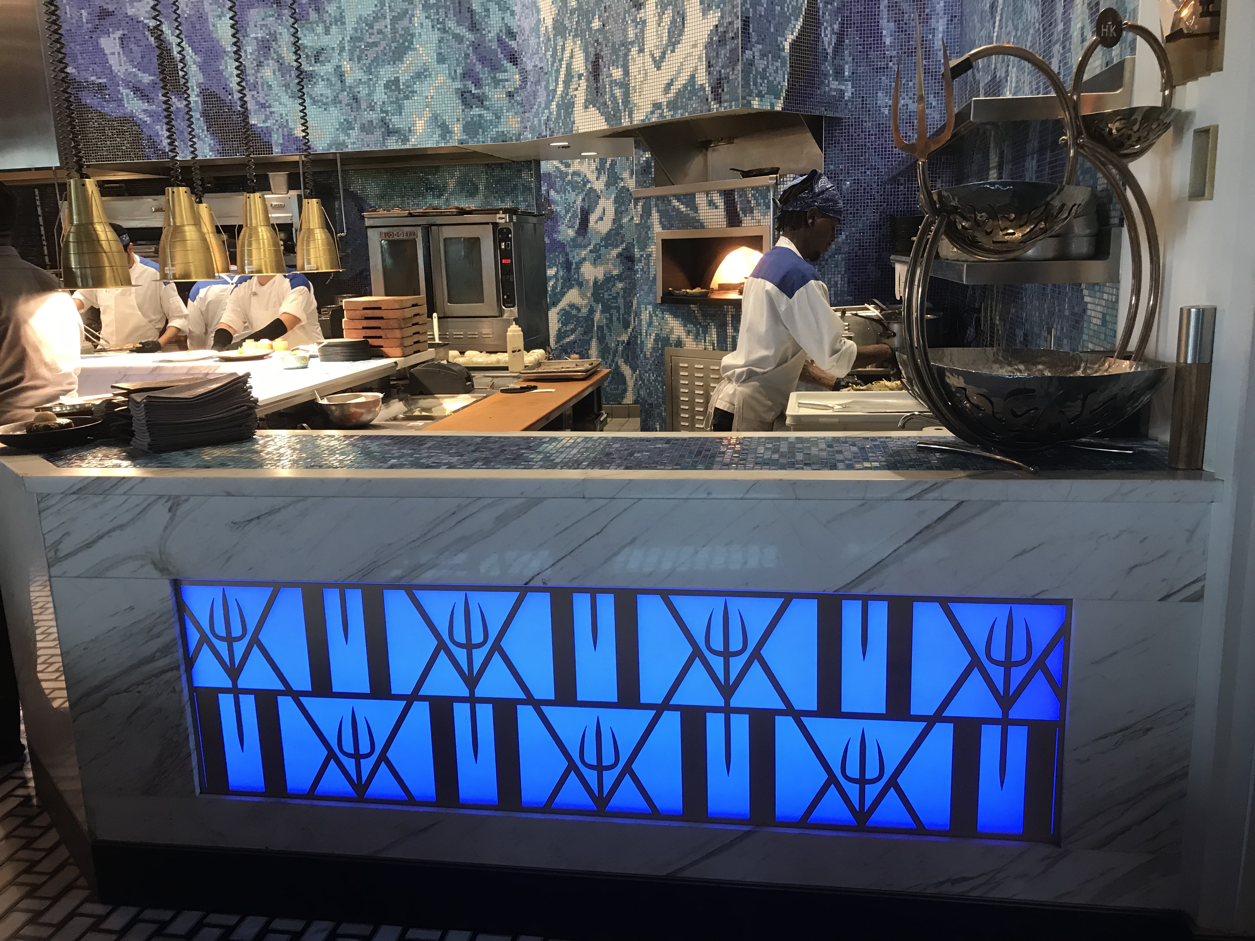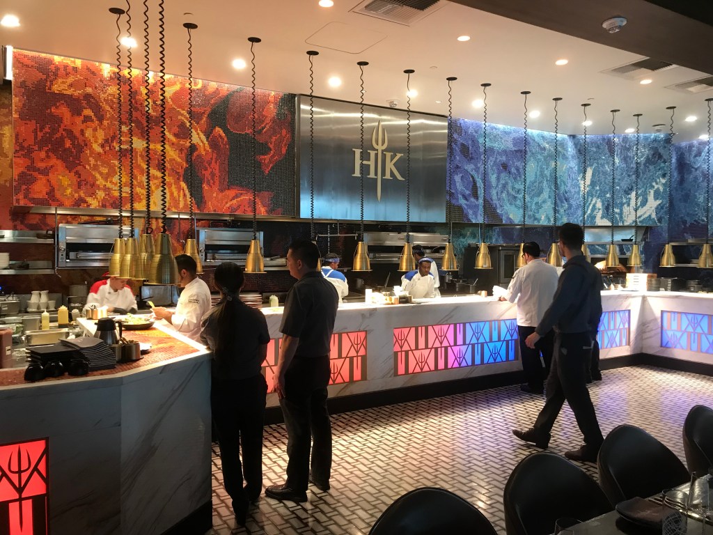 One thing that would have disappointed me if I was a big HK (the show) fan, was that there wasn’t any focus on the red/blue kitchen competition. I’m surprised that they don’t say “your starter was prepared by the red kitchen” then “main, blue” and ask you to vote. As it was, I don’t even know if the kitchens even operate separately.