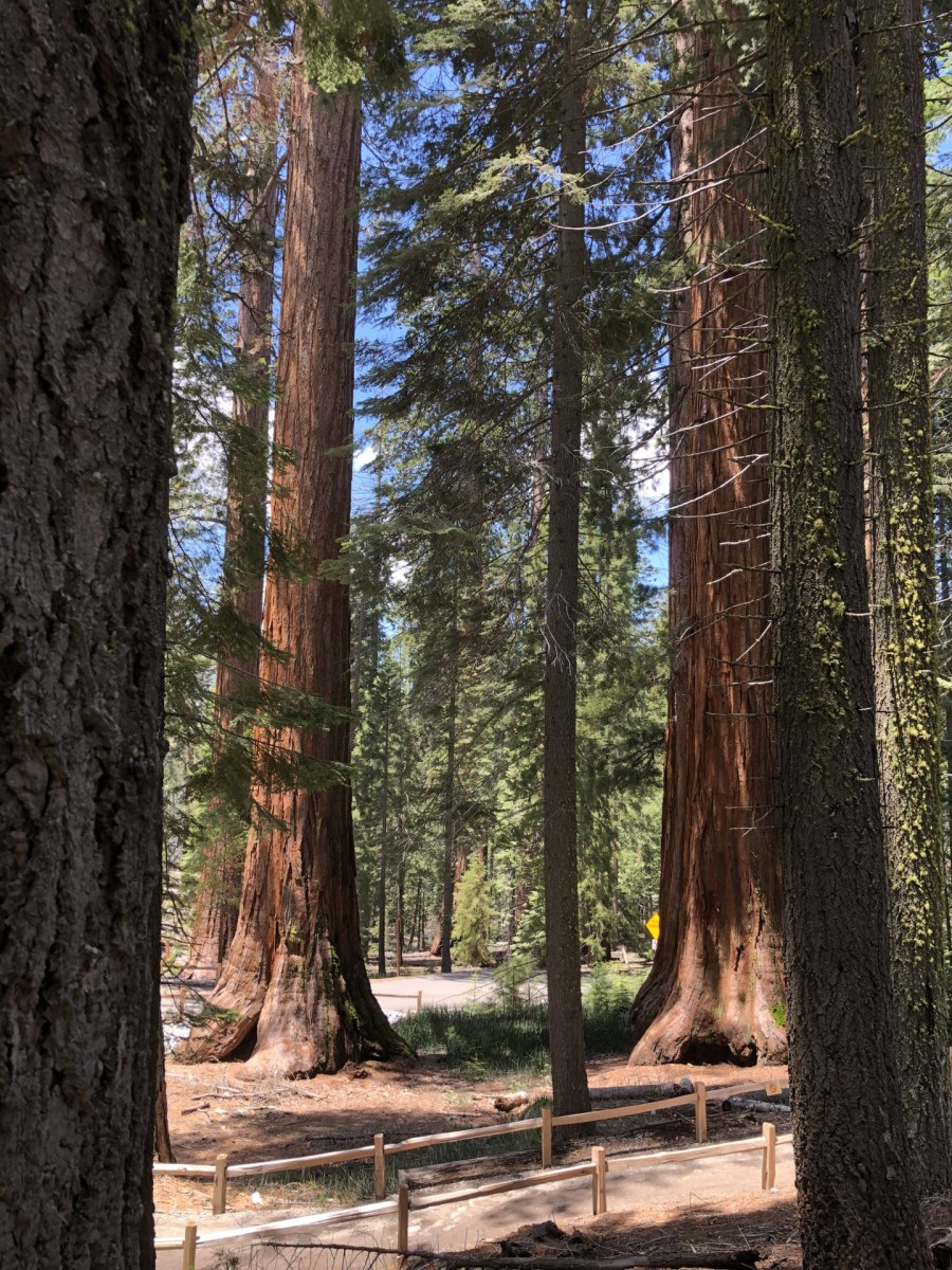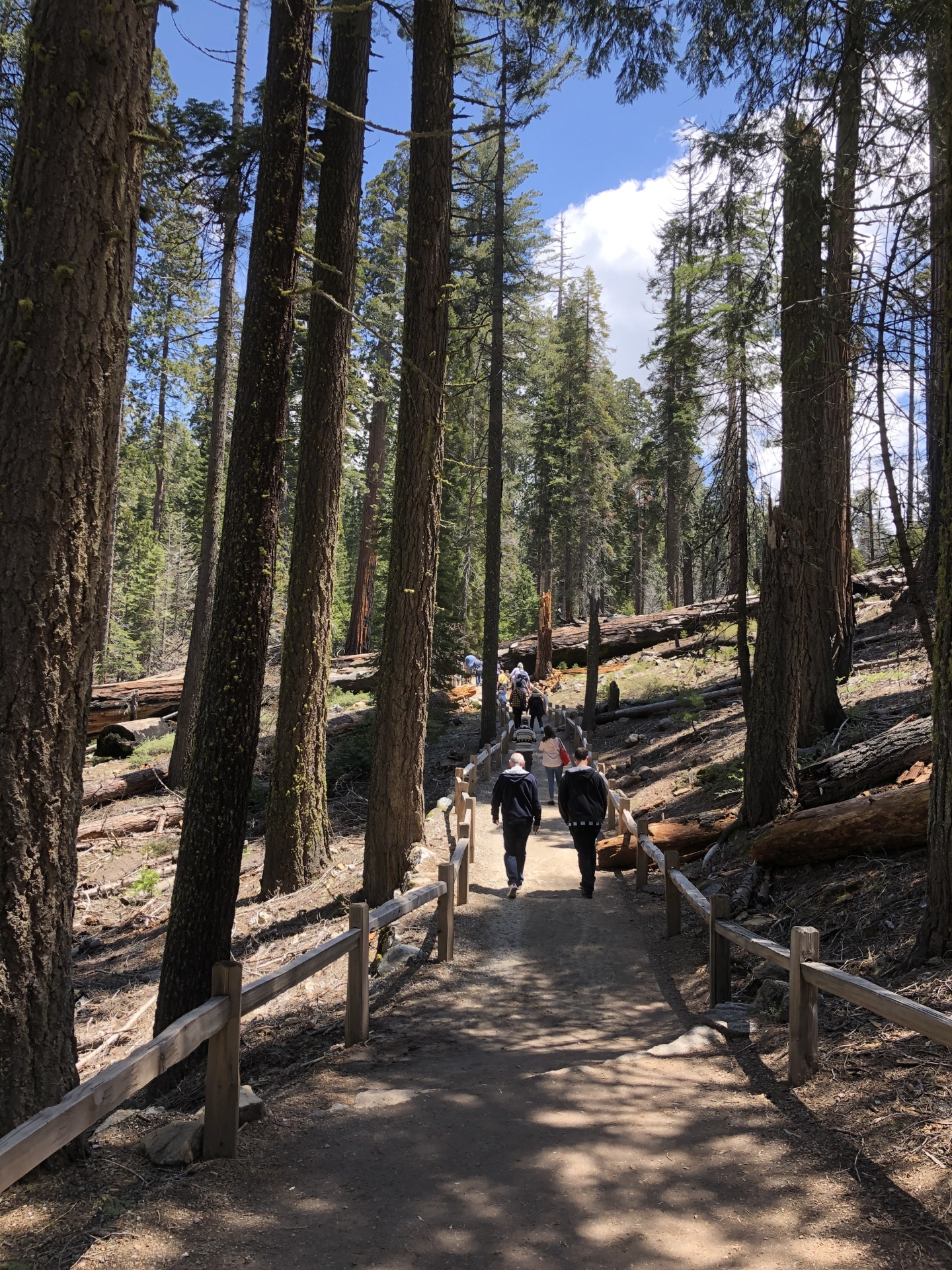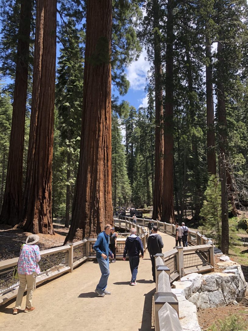 We took the shuttle bus to the entrance of Mariposa Grove. The path was smooth and fenced – certainly wheelchair friendly. The trees were really impressive.