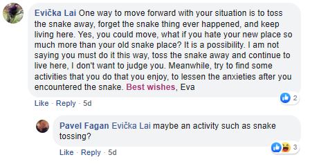 Evička Lai then suggested finding an activity that might help to forget about the snake..