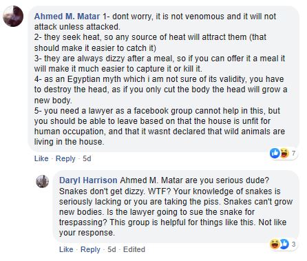 The conversation continued without ever properly identifying the snake, whether it had just slithered in or was the landlord’s pet. Aliya Nazarkasimova did ask if there was a company that provided anti-snake spraying services – like that is a thing!