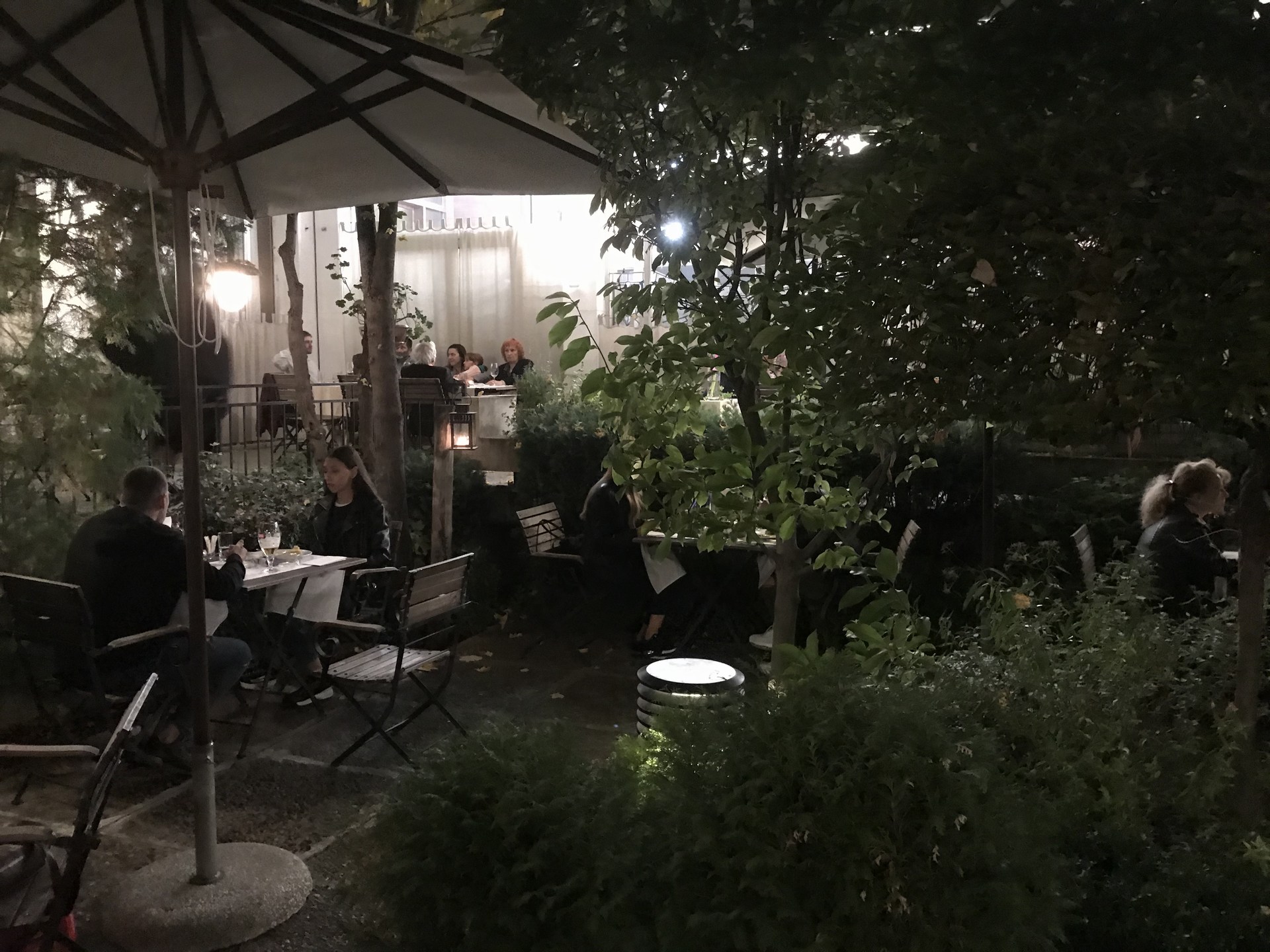 We didn’t book and arrived about 7.30pm on a Thursday night in October. The place was busy, including the garden, and we almost didn’t get a table.