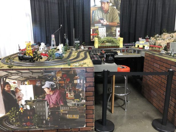 Almost unnoticed in the far corner was an homage to Bobby Bacala’s model railway.