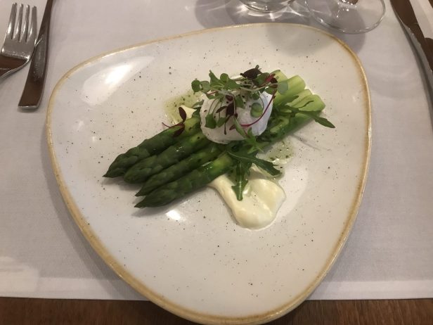 There have been some amazing starters on previous menus. Here are two of my favourites – asparagus, poached egg, Hollandaise sauce and gyoza. The gyoza are even better than the dim sum.