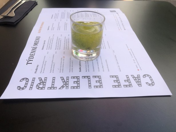 A glass of prosecco 95 Kč and a carafe of water with mint, lemon and lime 69 Kč. I’d be quite happy with free water and no fruit added.