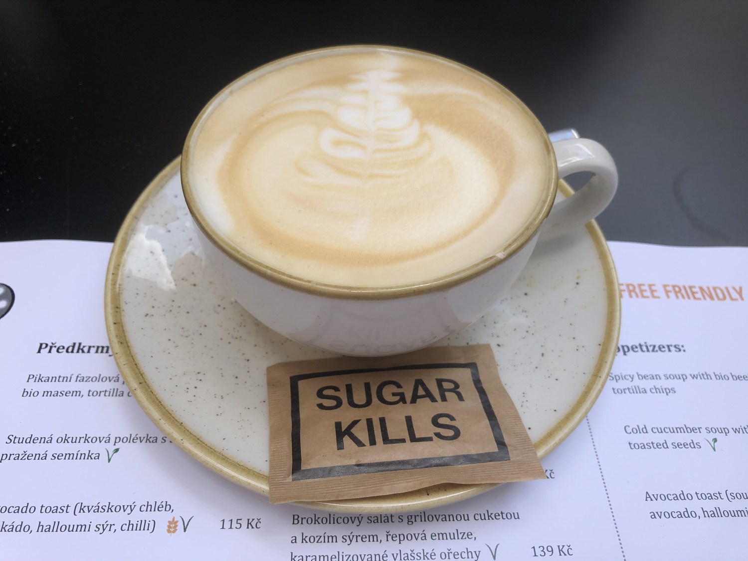 A good cappuccino was 70 Kč – but when did they start adding warnings to packs of sugar?
