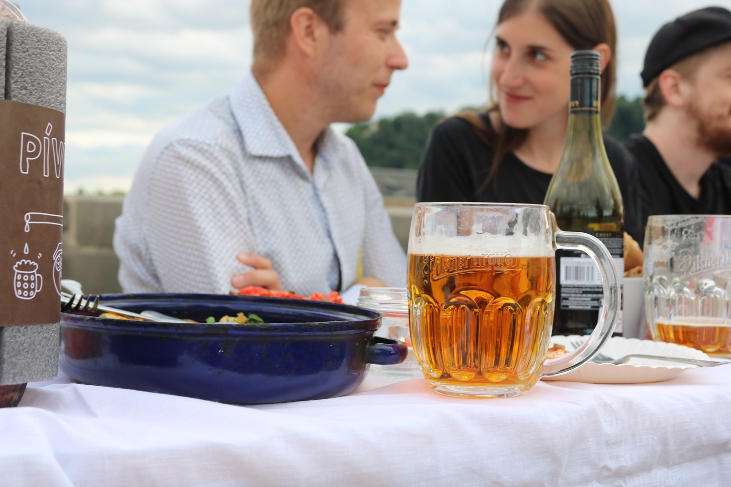 There was a bit of everything. Japanese food, a little sushi. And Italian, we were not surprised to see several pizzas. Homemade Czech sweets and other international ones like cupcakes. For drinks there were glasses and toasts with champagne, wine, shots and of course lots of beer.