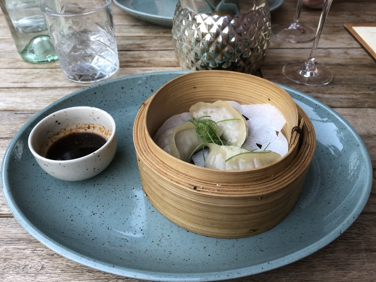 The waiter was friendly and we just ordered dishes as we went along – the first dim sum (steamed dumplings, shrimp, pork, lemon grass, garlic, eggs, black vinegar ) 165 Kč.