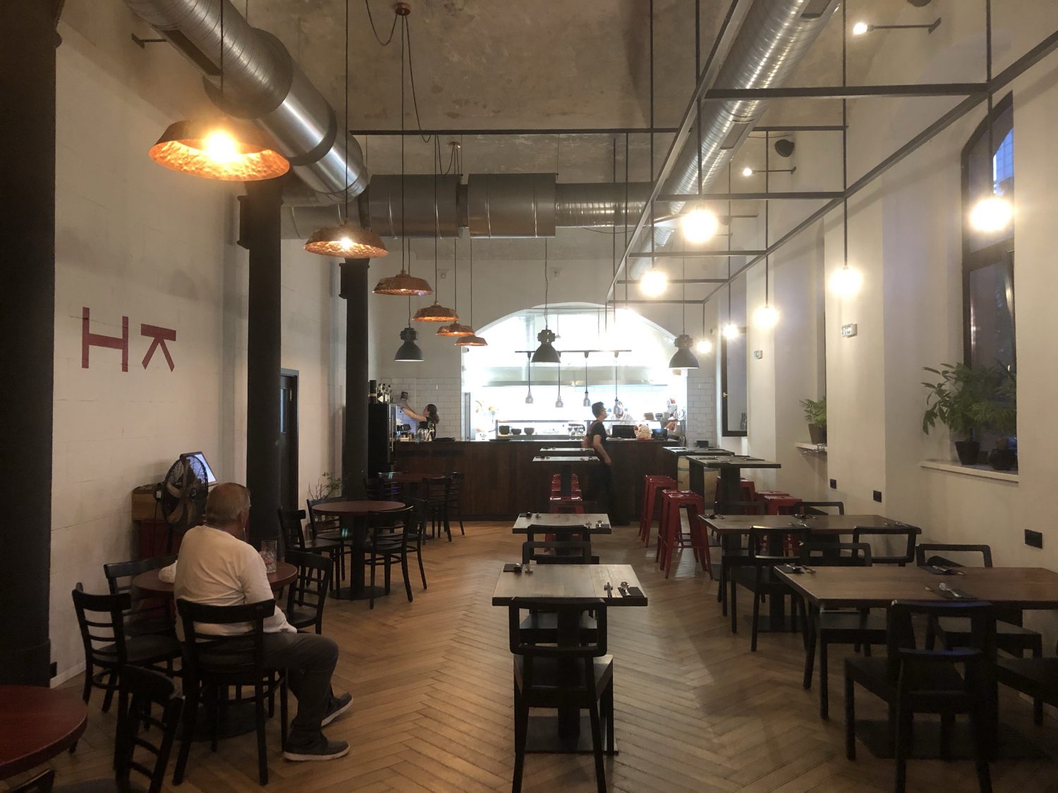 I took a look inside the restaurant. It has an industrial feel and has an open kitchen. The outside was better.