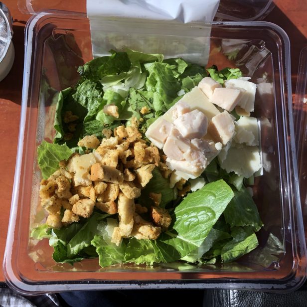 Alas, or maybe luckily, we didn’t get to try the sushi as it was sold out. We ordered a chicken Caesar salad for EUR 4.80. The picture in the menu looked good.