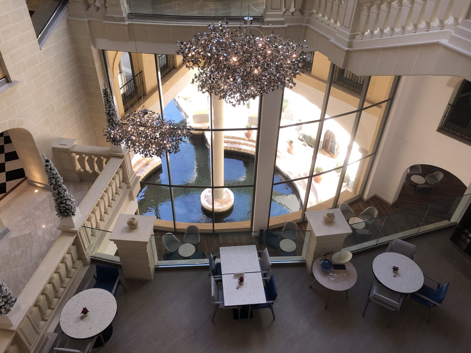 The outside pool area is perfectly landscaped. The indoor pool is lovely, although numbers were limited and bookings required. And as it was Christmas there were plenty of kids. Here’s a picture from mid-December last year.