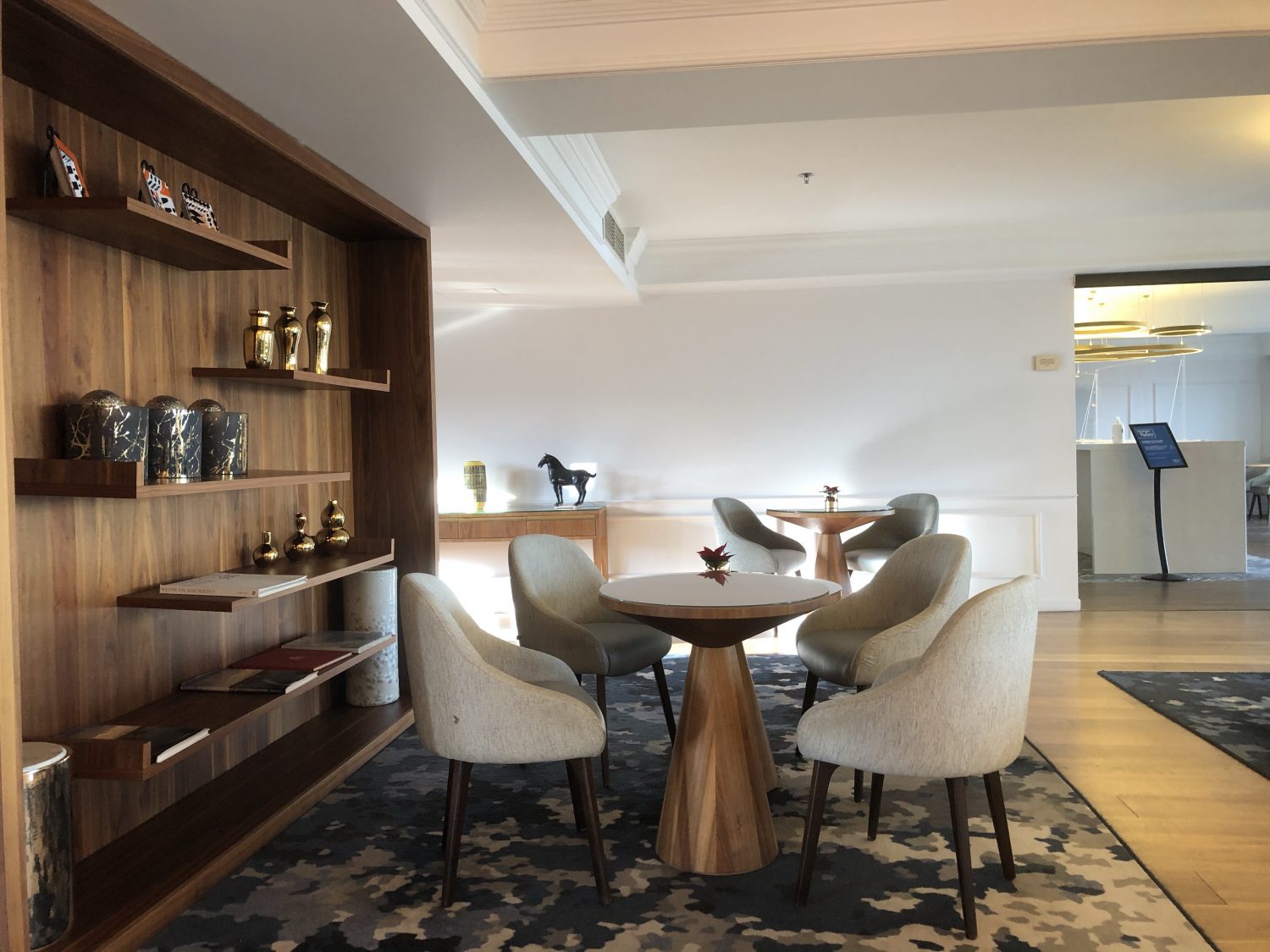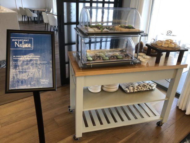 The Executive Lounge is on the ninth floor. Additional signage and hand santiser were at the entrance and throughout the lounge. The lounge is large and luxurious. Much better than you would find in most other Hilton Hotels.