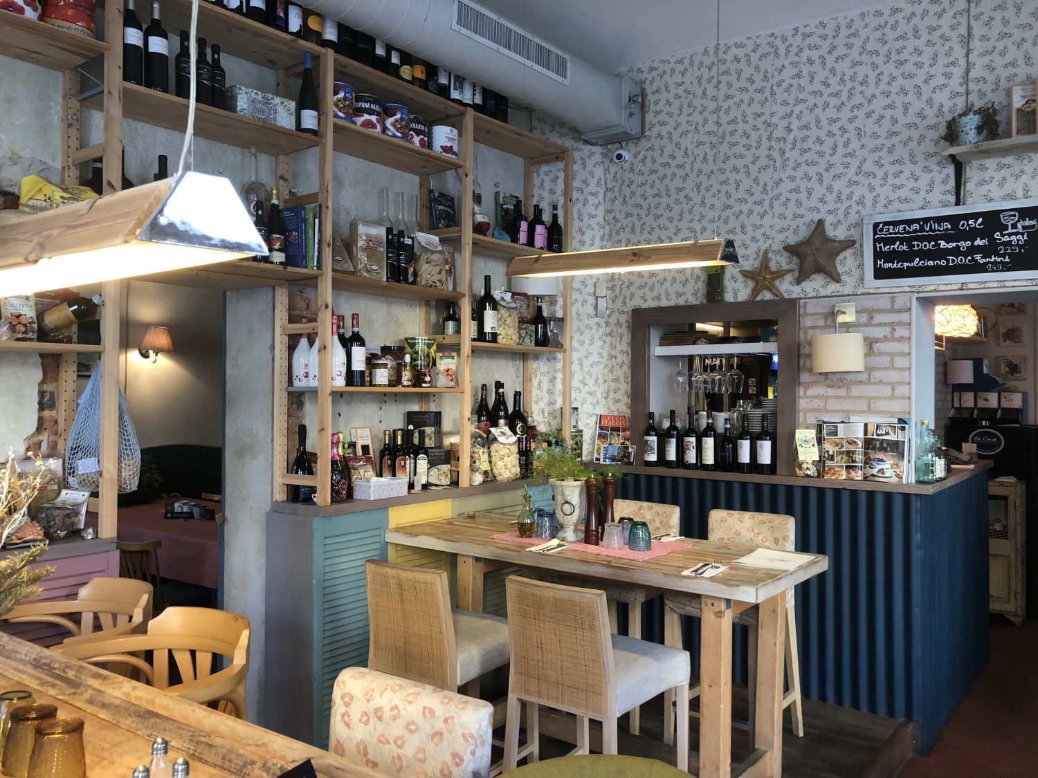 The interior of La Casa Trattoria is cozy and beautifully themed. There are several outside tables. Across the street is a park where locals play petanque. You almost wouldn’t know you were in the ‘lively’ Žižkov.