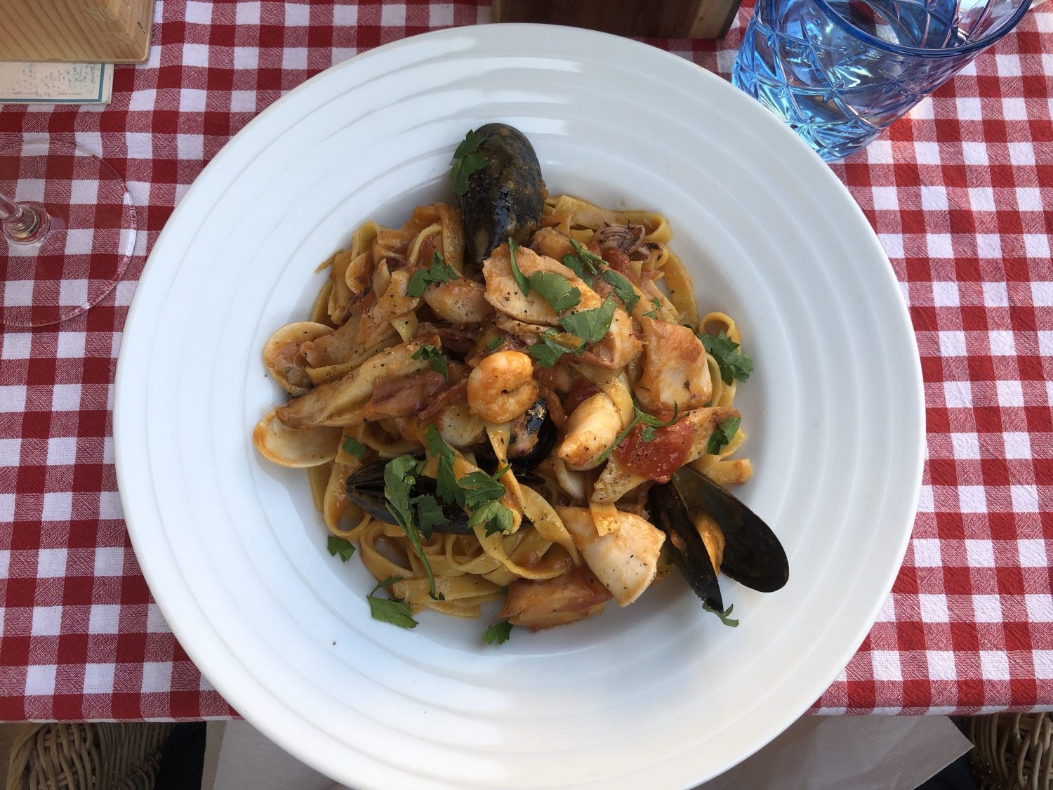 Both meals were delicious. There was a generous portion of seafood with the tagliatelle.
