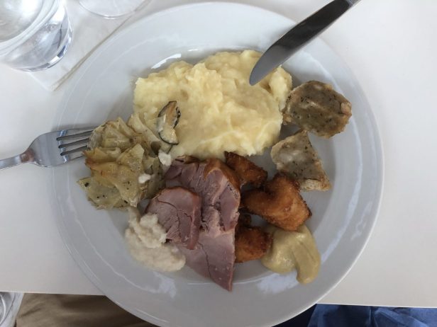 There was nothing like that in place. In addition, the food was mediocre (there is a video of the buffet in the review video above). I managed to salvage some mini chicken schnitzels, dumplings, mashed potatoes and a few slices of ham. I added both mustard and horseradish on the side to make it edible.
