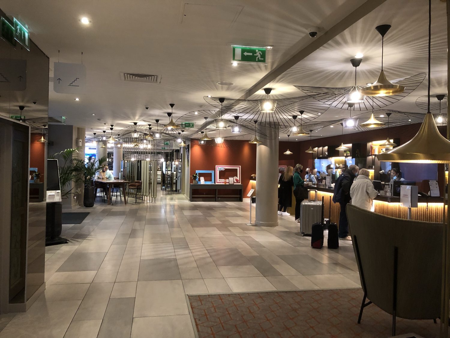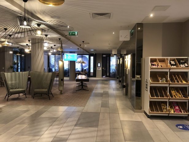 The lobby was large and modern.