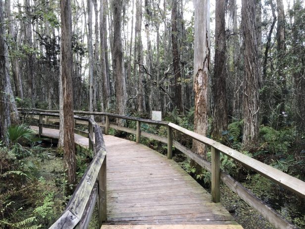 There are some shows, but we didn’t bother with them. The main attraction for us was the main lake, filled with hundreds of alligators. The swamp walk is also pretty good – a quiet boarded path through a typical Florida swamp and similar to some of our walks through the Everglades.