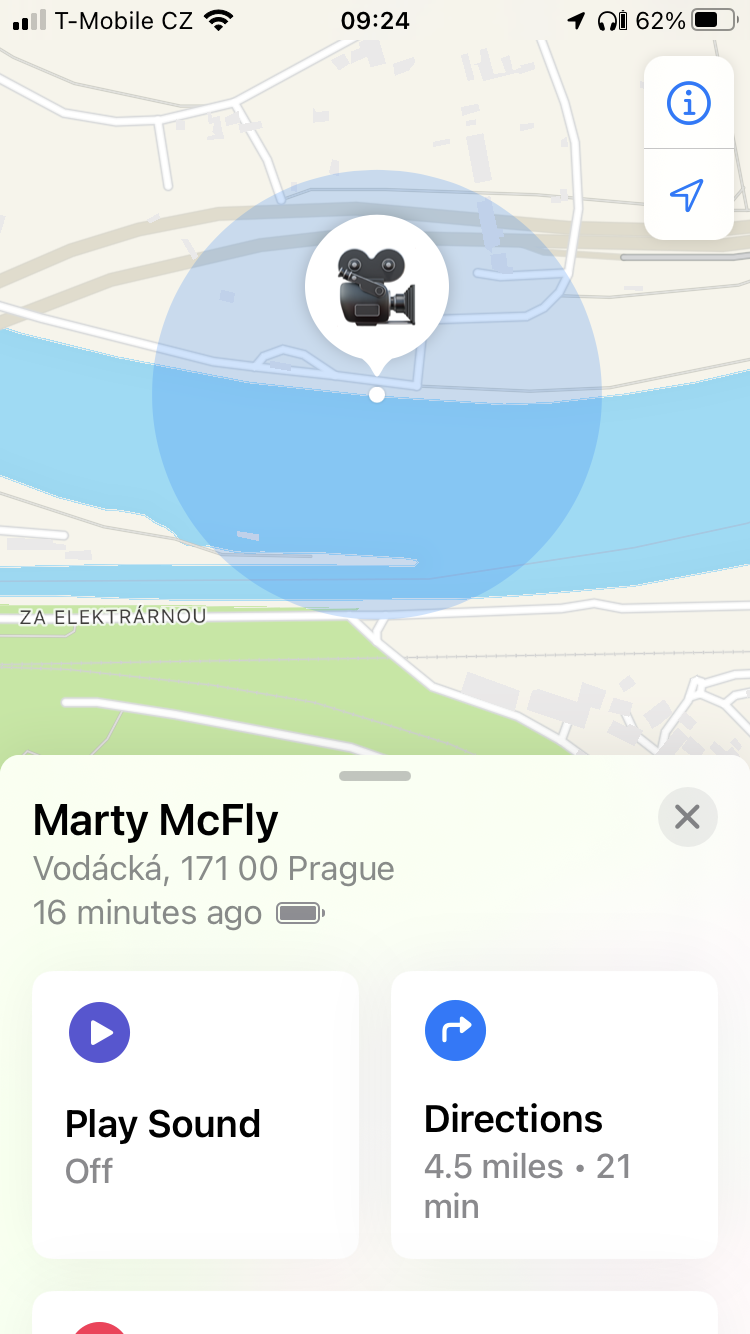 Monday 13th December 9:08 am, Marty had travelled another 4 km – pinged by someone on Vodácká street in the Troja area of Prague.