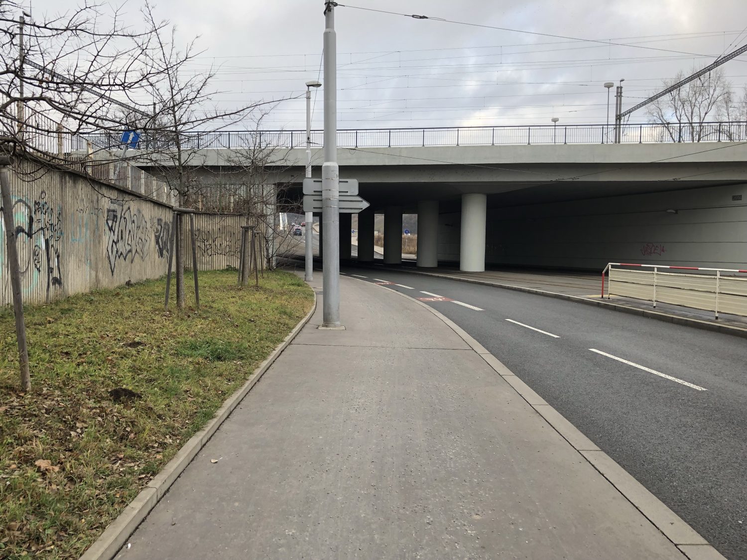 We continued and Holešovické nábř. became Za Elektrámu – still nothing.