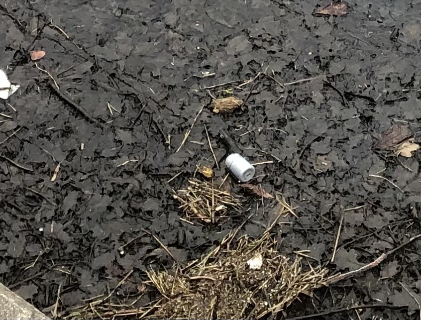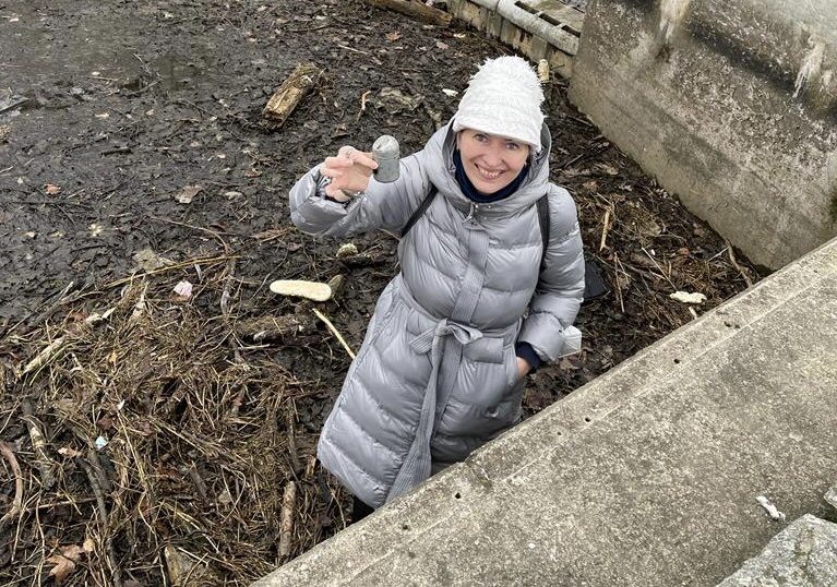 Our reporter bravely climbed down to the river bed and retrieved Marty’s cannister.