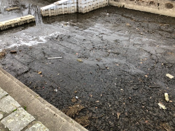 We think that as Marty was happily continuing on his journey, he was caught in the back swell into the slalom course and became stuck as the water drained out.