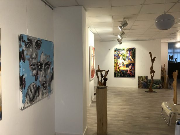 The video below shows the art displayed in January 2022. The paintings on the floor are by Czech artist, Martina Krupičková and had just arrived.