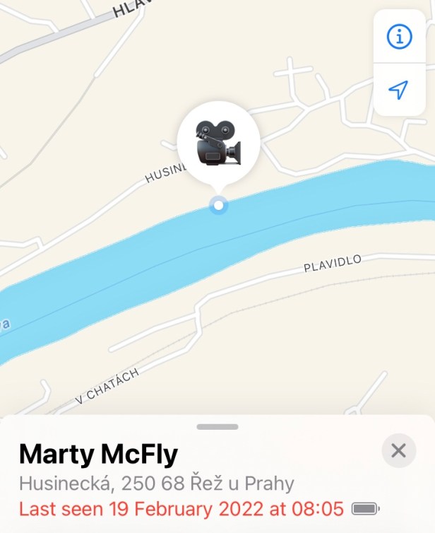 A Marty McFly figure and an Apple AirTag were stored inside a cannister and dropped into the river in Prague. Marty was then trapped upriver and re-floated. Now after a month, he was pinged 10km inland – someone has Marty!