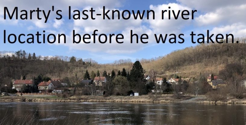 19th February 2022: Marty was pinged further down river near Husinecká street.
