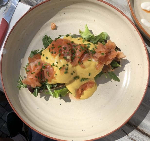 Thursday 14th April was a warm sunny day in Prague – perfect for an al fresco lunch. I chose Hezky Česky because they have eggs benedict on the breakfast menu and hoped they’d still serve it at lunchtime.