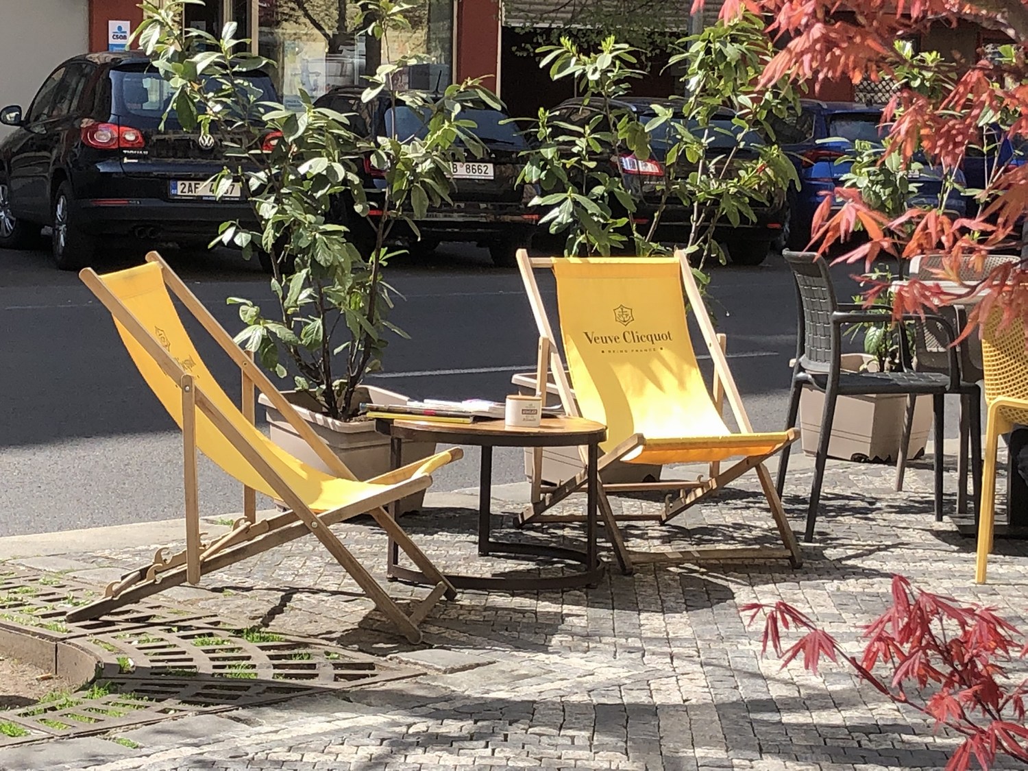 Anglická street is quite busy with traffic – the pavement/sidewalk is quite wide and so we weren’t bothered by that. The deckchairs are close to the street.