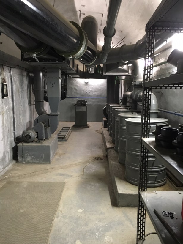 There is still old plant and machinery down there for water, air filtration and electricity supplies. There were a few rooms set aside for showers and toilets – although it seems that privacy wasn’t something that fallout survivors could expect as the toilet cubicles had no doors and the showers were communal. I didn’t see any obvious bedrooms and so I’m not sure where survivors were supposed to sleep.