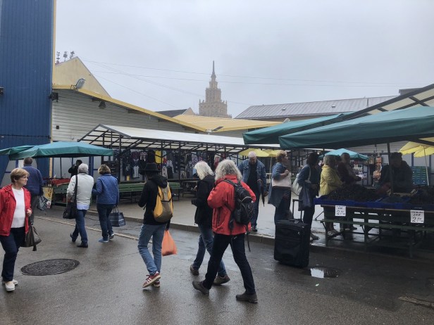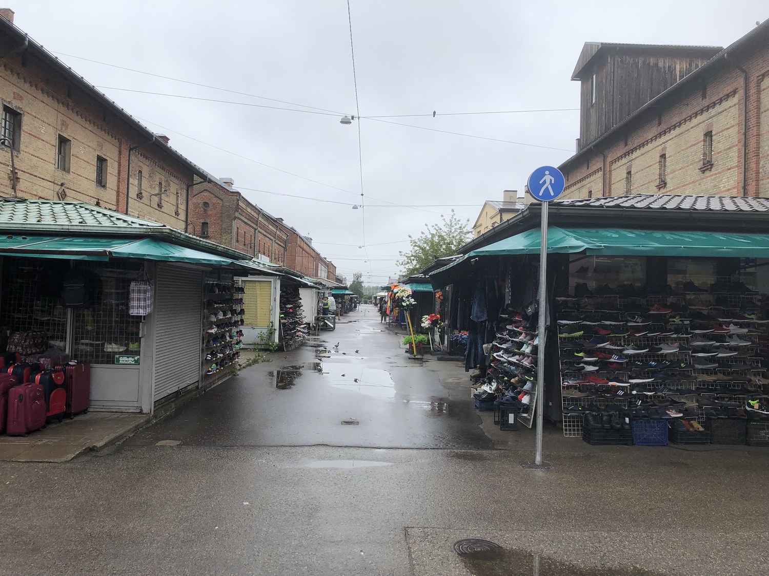 There were some clothes stalls – it looks bleak, but it was a rainy day! In the background you can see the Latvian Academy of Sciences building.