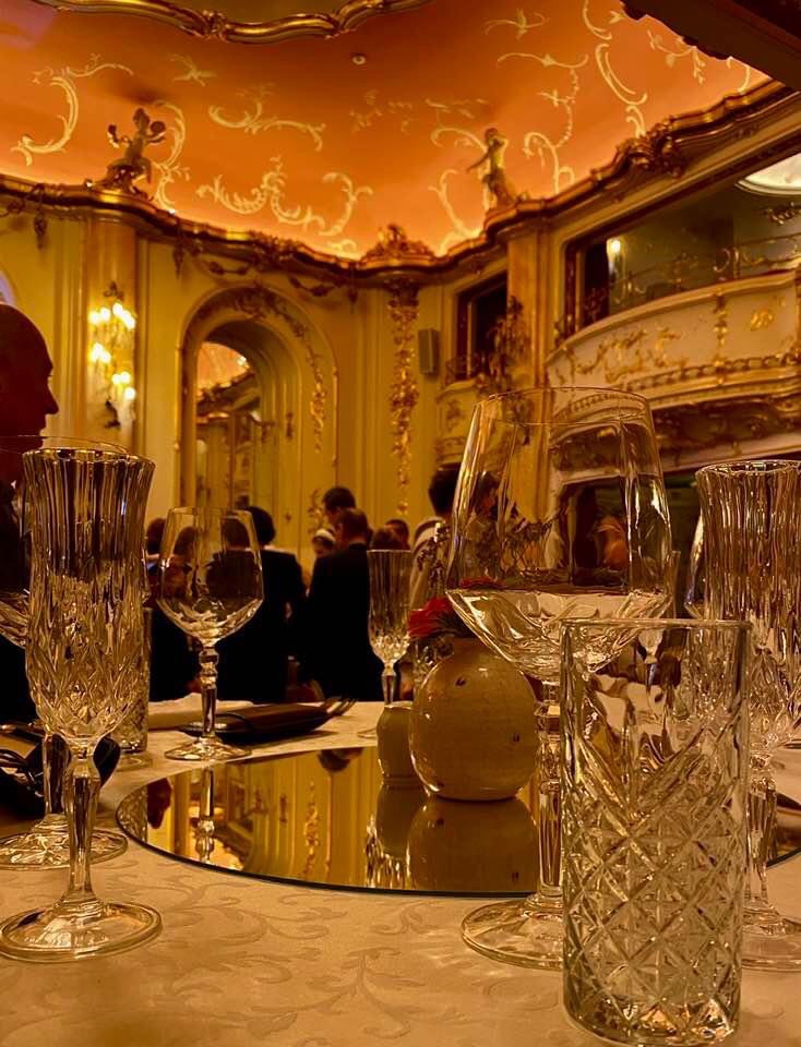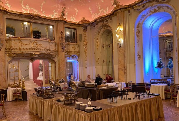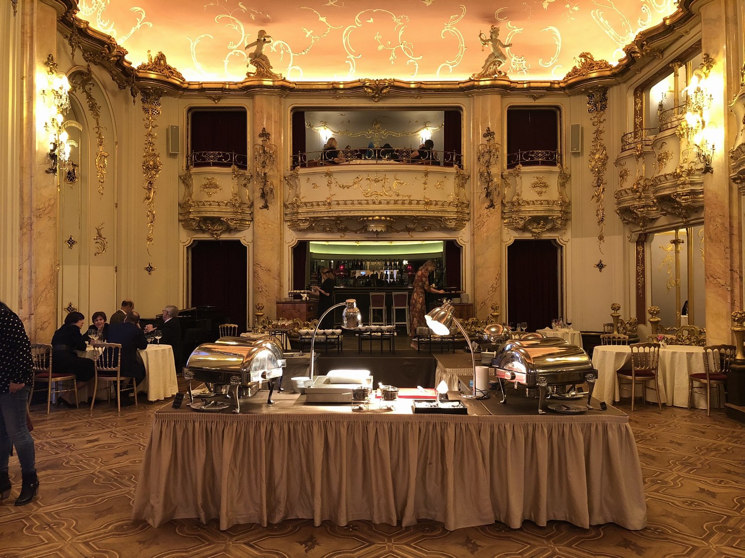 Beneath the Grand Hotel Bohemia lies an amazing and historic ballroom. The Boccaccio Hall has a neo-Rococo style, with lavish stucco decoration, gilt elements and traditional Czech crystal. We visited for Sunday brunch.